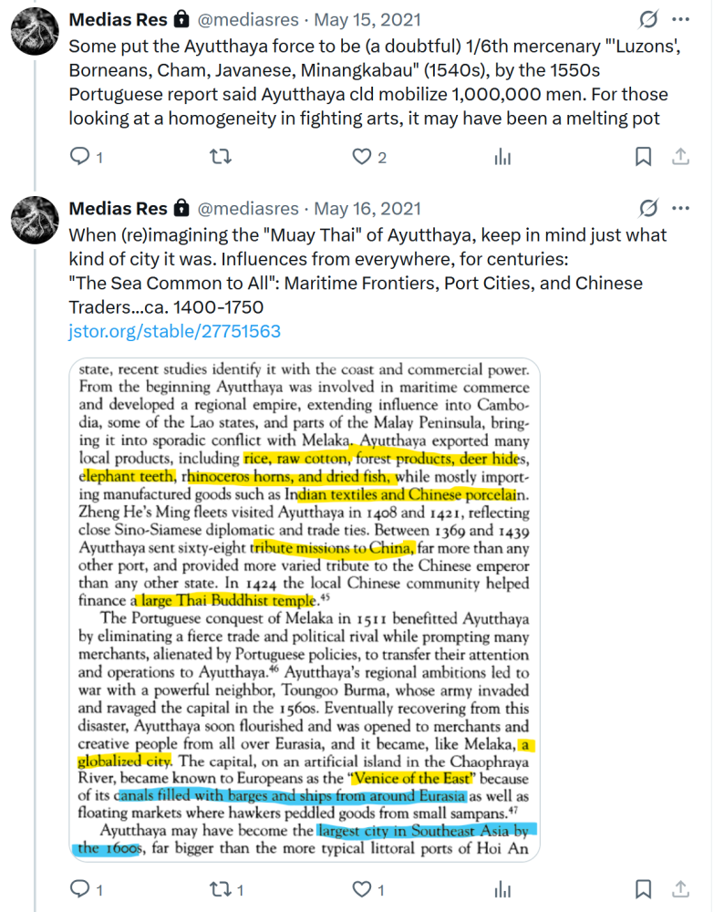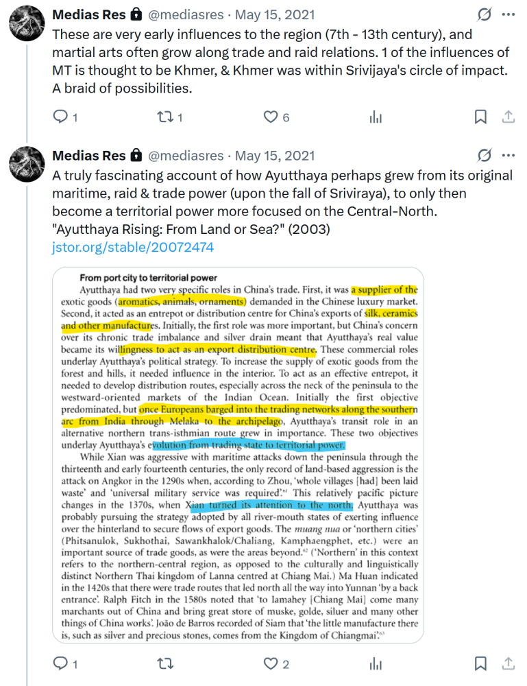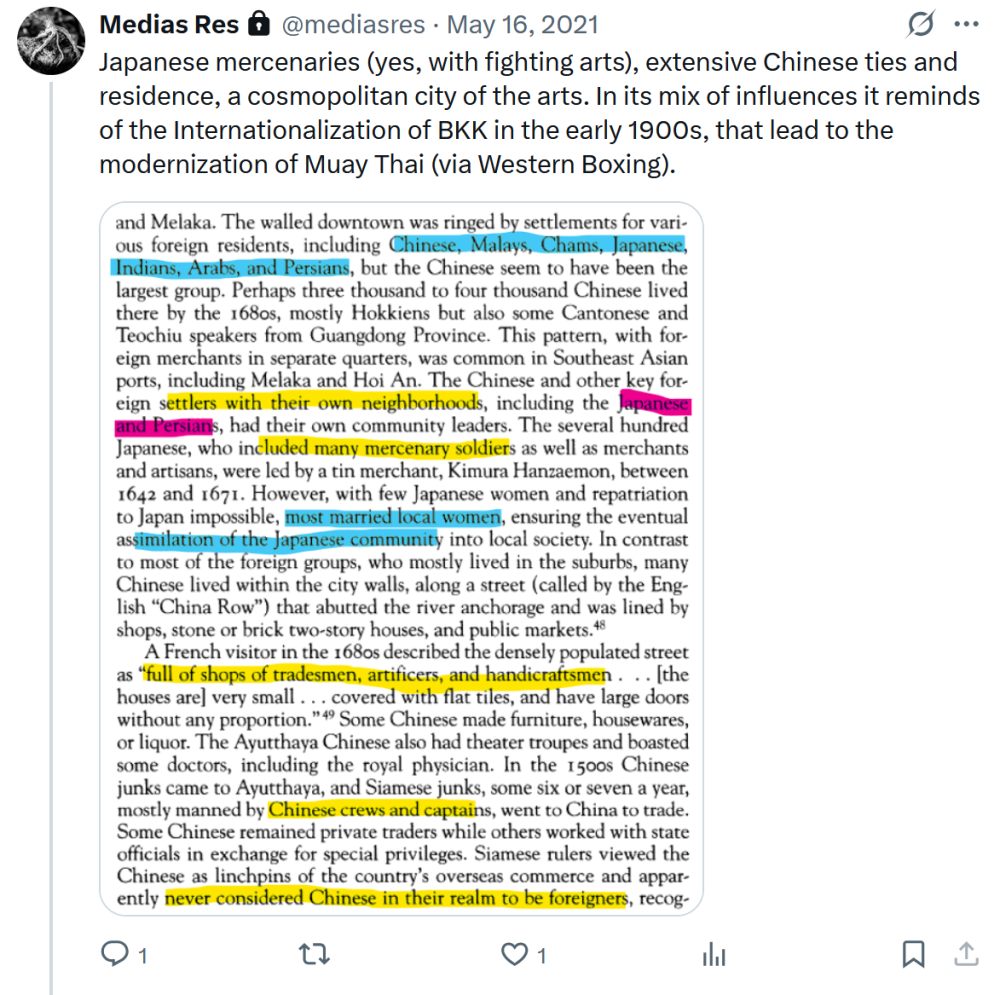 Was talking to Sylvie about this very interesting historical cycle involving gambling in Siam and then Thailand. To be very cartoonish about it, provincial farmers would sell their crop and put the money in the ground, literally burying it. This would take the money out of the economy. Gambling worked as a counter to this trend, recirculating currency...but, when they would come to the capital to sell their crops in the 1900s this worked too much to the extreme. Chinese mafia and dens of gambling would drain them of their payouts, leaving them and their families enslaved (servitude). So, capital Chinese mafia gambling, which was very pronounced (gambling at one point in the early 20th century accounting for more than a quarter of the government's income through tax farms) developed a strong moral taint, farmers would loose their livelihood and fall into servitude in dramatic, destructive trends. King Vajirivudh ended up outlawing gambling in the 1920s. But, there is a kind of moral-economic tension or spectrum, between the money that stays in the ground (a traditional picture), and money that circulates in the wider, urban economy, with corrosive effects. And even to this day you have this pattern in Muay Thai, with Chinese ancestry Bangkok promoters who have been aligned with mafia and gambling (scene as a moral vice still), and the provincial fighter, who comes to the capital, looking to win big. There is a tension between tradition and custom in the land, and the (International) urban Casino. What is interesting though, the custom of local market gambling also is that which shaped provincial Muay Thai itself, which I detail here: On the history and psychology of gambling, I wrote about this here (there you can find the pdf of Gambling, the State and Society in Siam, c. 1880-1945 by James Alastair Warren which is very, very good):